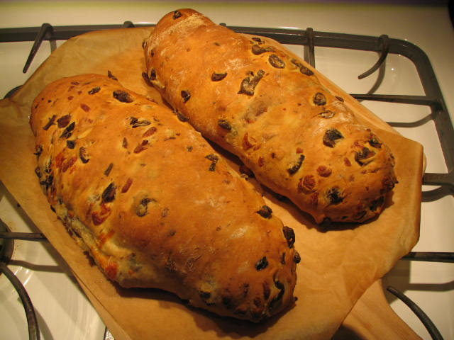 Wow! I was surprised today at work with the texture of this bread when I finally ate some. I've never worked with a 'biga' before, and my first visual impression was that it was just a normal loaf of bread.......This was the lightest, softest bread I've made so far.......In comparison with the sourdough ciabatta, I would have to say that the judgement between the two would be really subjective. The sourdough was a little heavier, more substantial texture...but still very light. The ciabatta with biga was a big hit, but probably no so much with the texture.....the mushrooms, serrano, garlic, and cheese I added to the dough probably elicited the most responses....Also, I think my co-workers probably really like soft bread...which the ciabatta/biga is very, very soft.....