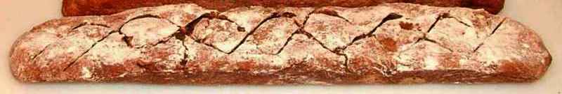 I usually do not dust with flour nor do I score the top crust. But I did to see what would happen. This one was baked in a metal baguette form although little mini-loaf bread pans work very well especially if I cover them with aluminium foil while baking.