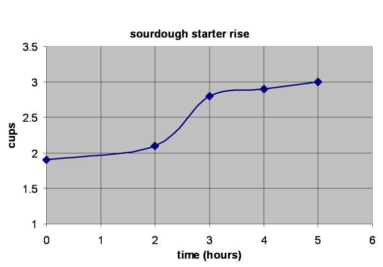 ..the volume of my starter at a fixed ratio (1:3:3 for example) with flour and water in a graduated container.  When I plotted it (Volume of starter vs time), I got an S curve that plateaued at the end.  I want to do more of that, say at different ratios of 1:2:3, and 1:2:2.  I believe the results at that ratio (and same temperature) will be repeatable.