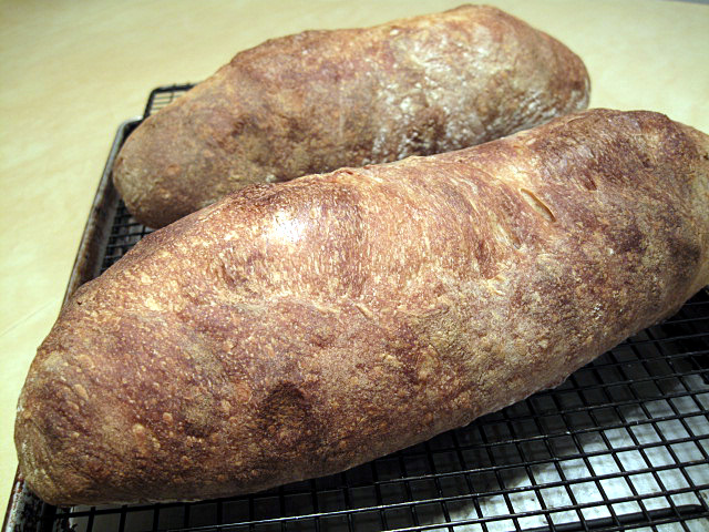 The combined effect of the different flours and the higher hydration was to yield a dramatically different bread with a much more open crumb structure - really ciabatta-like.
