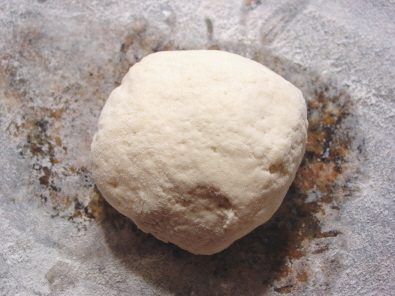 once I place it on a floured work surface I knead it 6-7 times by pressing the dough down with the ball of my hand then folding it back towards the middle. I turn it 90 degree's and repeat 6-7 times. Then I flip the dough over and roll it to 1/2 thick. I cut the dough with a metal scraper into squares.