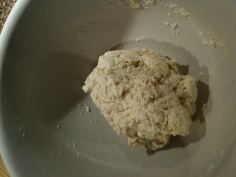 Then I added the buttermilk and using a fork I gave my arm a workout until the dough looked like this.