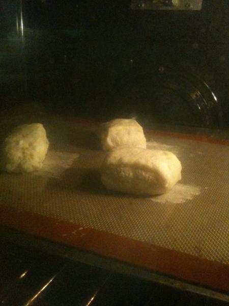 Note how much taller they are than the first batch (the tray of four). They look like little Frankenstein heads. These buscuits were better in every respect than the previous batch (although they are not as good, in my opinion, as the CI flaky biscuits).