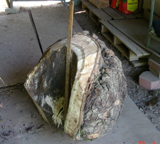 Then he removed the bark and more excess wood. It went down to 70 pounds, weighed on the bathroom scale! Still quite cumbersome.