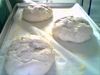 hey lindyd, sorry. i was kinda flustered at the time and miss typed. it was pr's rosemary potato bread from the bakers apprentice. i tried to follow up with some photos of the proofed dought last night but ran into 'technical difficulties'. it rose well but the dough ruptured at the surface. so nasty. i degassed reshaped, and allowed them to proof again. the result was better but the oven rise was not there. duh. anyway, baked them off and sampled one. flavor wasn't bad crumb was close and somewhat moist. not what i was looking for. interestingly, the first bake i forgot to brush with oil so i pulled them at mid bake and oiled. the next batch waas oiled prior to baking. between the two, it was the first batch that hat the better color. overall it was a disappointing outcome which means i'll have to try it again!