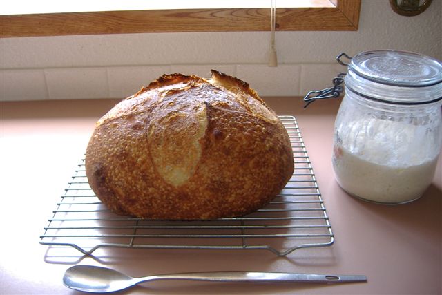 This is a loaf of Susan's sourdough that I was sure was way overproofed. In fact it surprised me and produced a lovely set of ears. Note the stainless steel stirring spoon, perfect for whipping up my starter. Susan is going to enter the picture! A