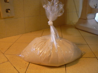 I woke up early one Saturday and decided it was a good day for some fresh bread. After mixing up the dough, and putting it in the oven to rise (I usually use the oven with the light on trick), my wife reminded me that we had to get ready to leave for the day...oops. I slid the dough into an oiled plastic bag, and popped it into the refrigerator.