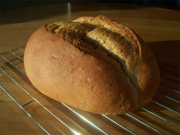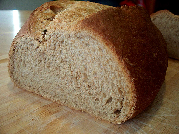 I have been developing this recipe for about 4 months now, and it has become one of those breads that's always around the kitchen. I use to make it solely for hearty dinners like stews, roasts, etc. I started off making one dinner sized submarine style loaf and freezing the rest. That worked great, but then I started making clover dinner rolls, and those were great too. This last time, I was rushed, so I just made one large hybrid boule/batard and hoped for the best. It turned out well for the roast we had that night, and lived on the next day in the form of morning toast and afternoon tuna sandwiches. The nuttines of the Whole Wheat really compliments tuna for some reason... very good stuff! Anyways, using only honey and molasses for the sweeteners keeps this bread pretty honest, and allows for the bread flavor to remain dominant.