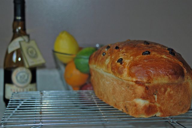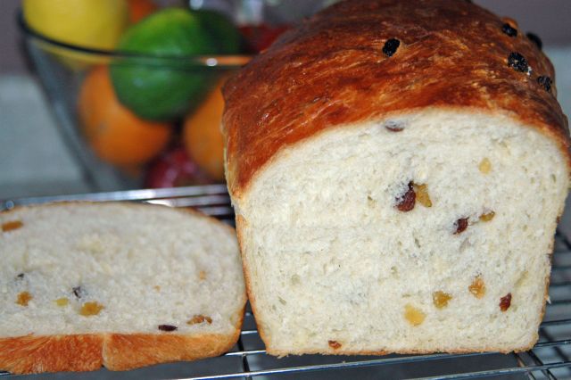 A quick entry today because I didn't do much. The raisin bread is wonderful and filled the house with that "to die for" smell, but I can't take much credit for it. I had a mound of dough left over from the sticky buns yesterday so I figured I'd just stretch and fold some raisins into it and let er rip. It sat and proofed for another hour and into the oven for 40 mins at 350. I think the neighbors could smell it from the street cuz it's going fast. I just made myself a "moscow mule" and browsed BBA for SD tips. I have a firm starter getting ready for a basic white SD tomorrow. I need bread for work sandwiches. Anyway, here are the raisin bread shots.