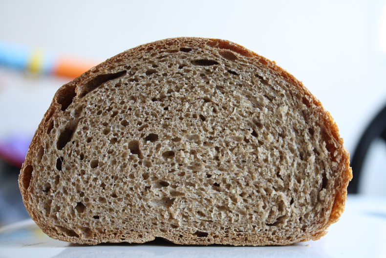 Any other criticism is of course much appreciated. Crumb looks ok to me for a 95%/5% dough at 76% hydration.