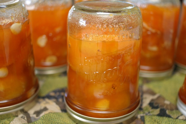 *'Almonds': crack open pits, boil 'almonds' for 1 minute. Slip skins and separate into halves.