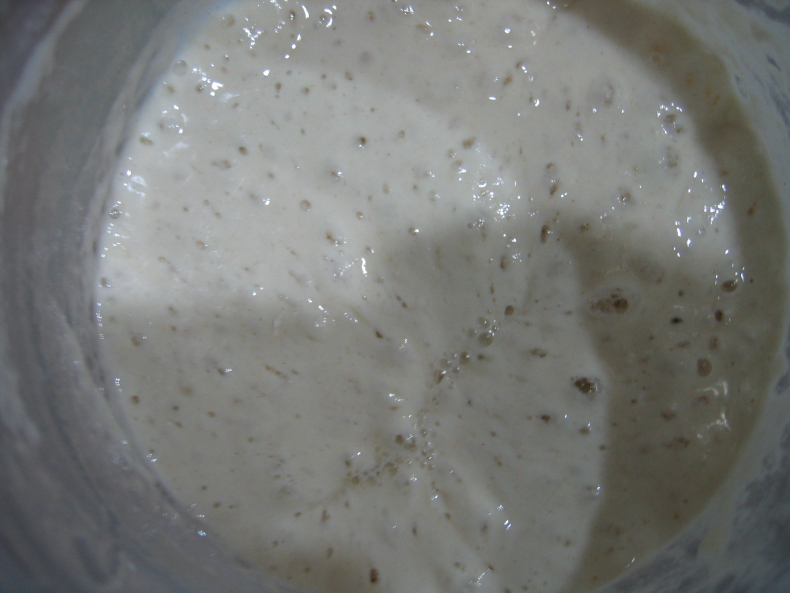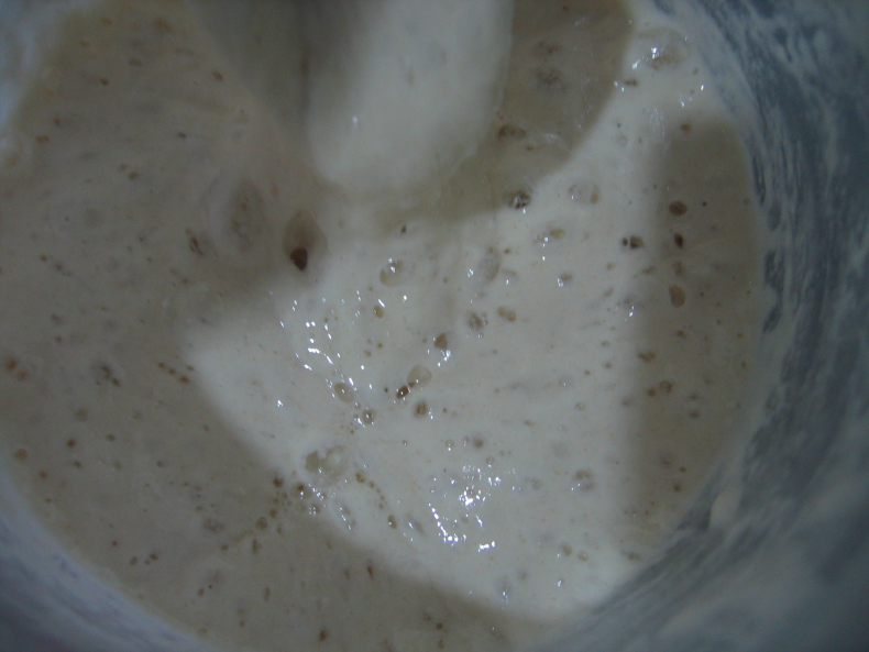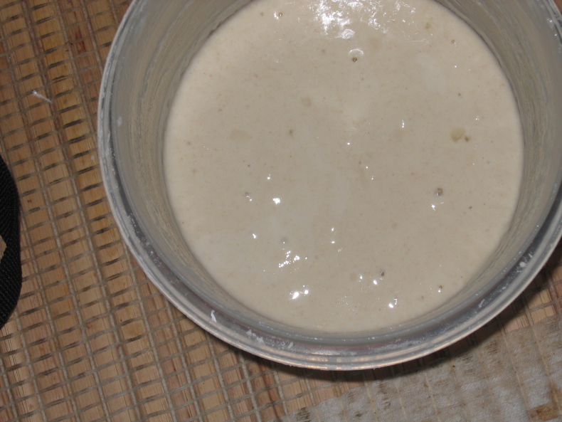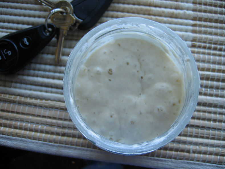 Levain build about 1 hour after mixing levain (125% hydration, per Hamelman):