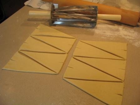 Dough cut into triangles with a Croissant Cutter, not an essential tool but a nice gadget.