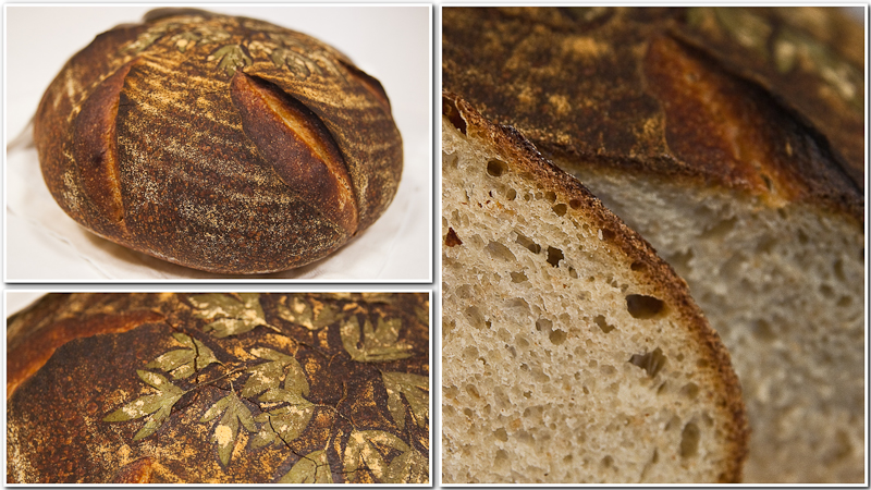 Hi Betty, I laughed with delight at your puzzled note above.  Shiao-Ping suggested a stencil for the miche, so I went for the parsley (but truth be told, it's not my idea), I've seen it somewhere, on a picture, but cannot remember where.  I arranged the leaves on top of the bread before I placed it in a banneton for retardation.  I guess the moisture that the bread has nicely saturates the leaves, so they don't burn during baking.  It's nice to know that the result was pleasing.