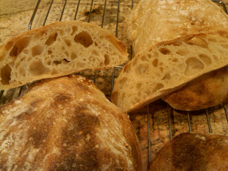 Very beautiful! I've made Jason's cocodrillo Ciabatta as well and I didn't manage to get such nice Ciabatte. the dividing into portions before fermentation sounds smart and and I can imagine that your plastic wrap helps a lot, too. Thanks for sharing!