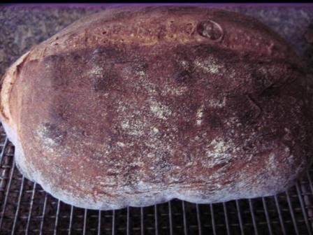 I did two bakings actually: My first mix this morning was for the baguettes with poolish, and I followed that up with another poolish-based rustic bread: Hamelman's Pain Rustique by way of James MacGuire and Raymond Calvel. I love the fact that this no-knead, no-shape bread is ready to bake in just over two hours (not counting the overnight fermentation of the poolish). What other bread can be created in such a short time with the distinctive nuttiness of the poolish-based dough?