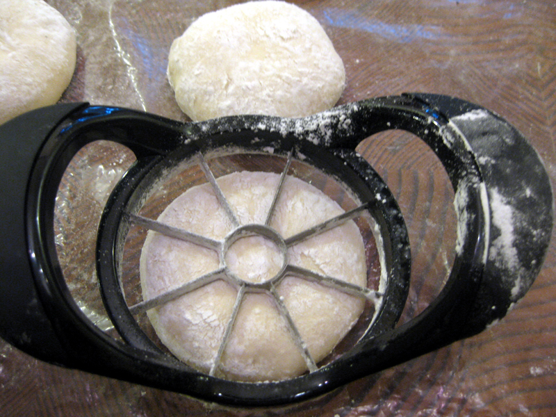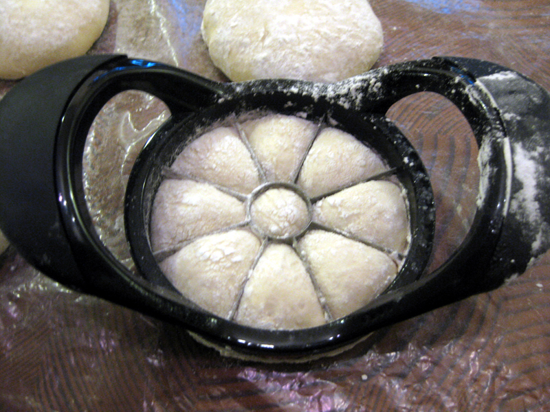 Here's 2 rolls in the bunch from yesterday stamped with the apple slicer. This was not a very typical batch as I usually get much better puffing results. Be careful not to go too deep or they will open up when rising in the oven. BTW, I'm in the Atlanta area also. I use 75% White Lily AP flour and 25% White Lily bread flour to approximate the Italian 00 flour. The biga is 90% of the final dough. I also add either some malt syrup (expensive) or a 75% dark corn syrup-25% molasses blend that I think has basically the same flavor as is much less expensive. I get everything from Publix.