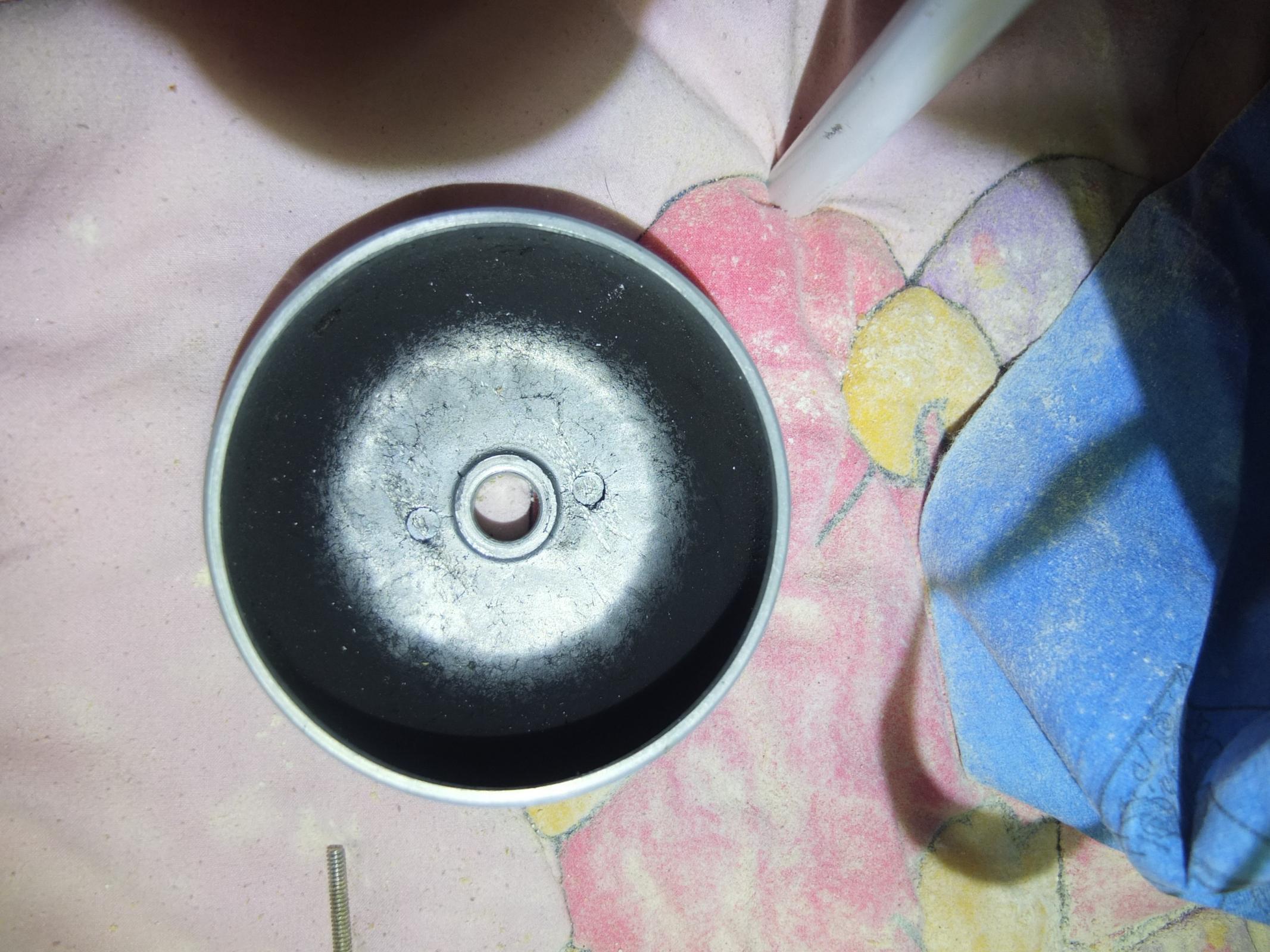 The next day I opened the front (plate, stone, ring) and cleaned them all. There was some old stuck flour (not large quantities but some) in crevices and on these parts. After this, I operated the mill in my yard WITHOUT any flour collection bag and let it empty into a large stockpot. I only ground about a cup of wheat but the motor ran strong/well.