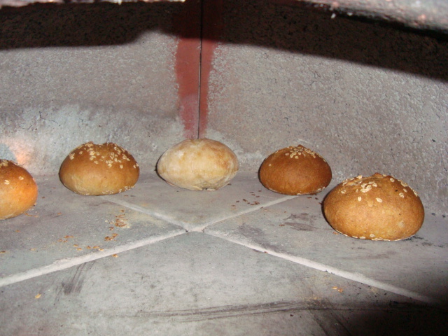Oatmeal boules and in the center Susan's Sourdough boule...the glow on the wall is not from heat..it's a reflection from the camera shooting in the black of night with a flash.