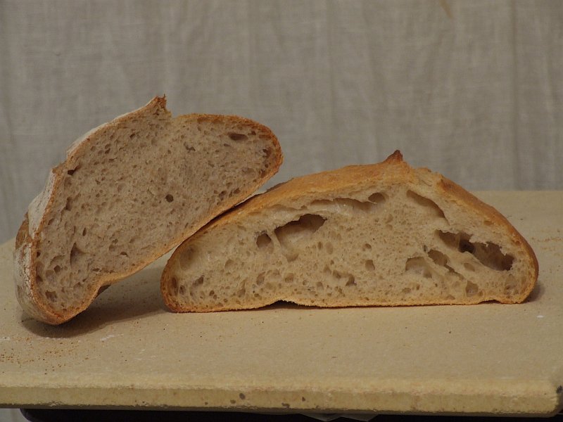 I made two batches of bread in slightly different variations on the Pain de champagne from Reinhard's Bread Baker's Apprentice, and the results are quite different.