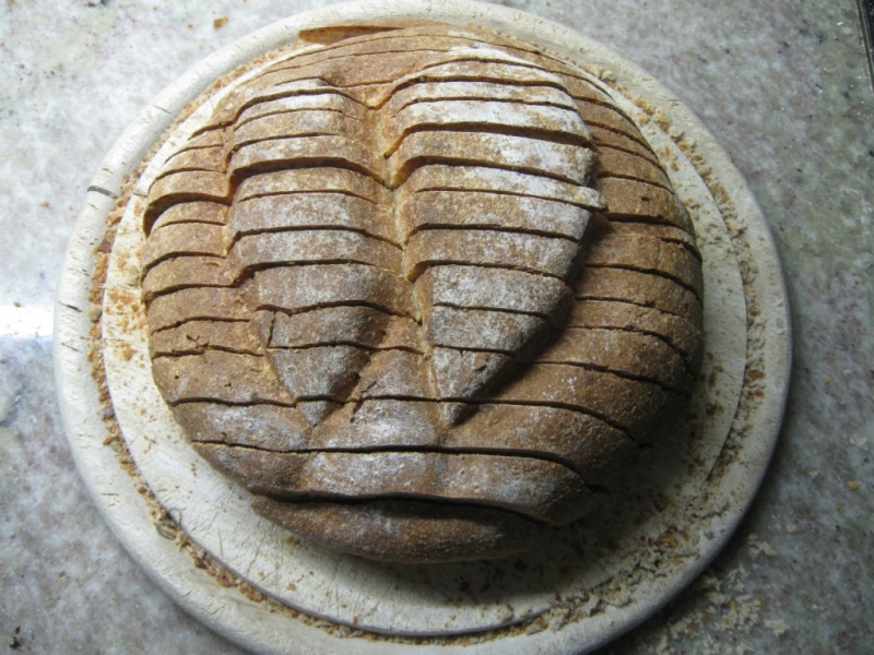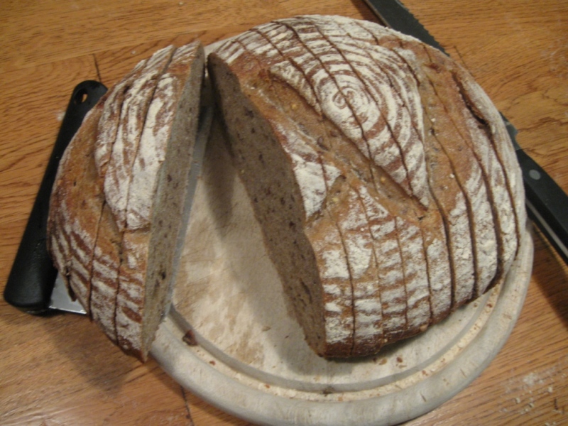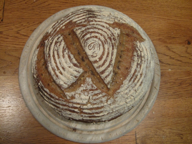 Mini, I scored that one rather late, just before it went into the oven. With a low oven rise, this was the result. I don't have any forms..
