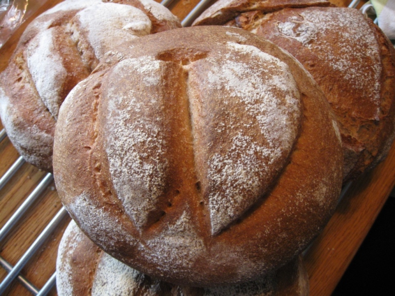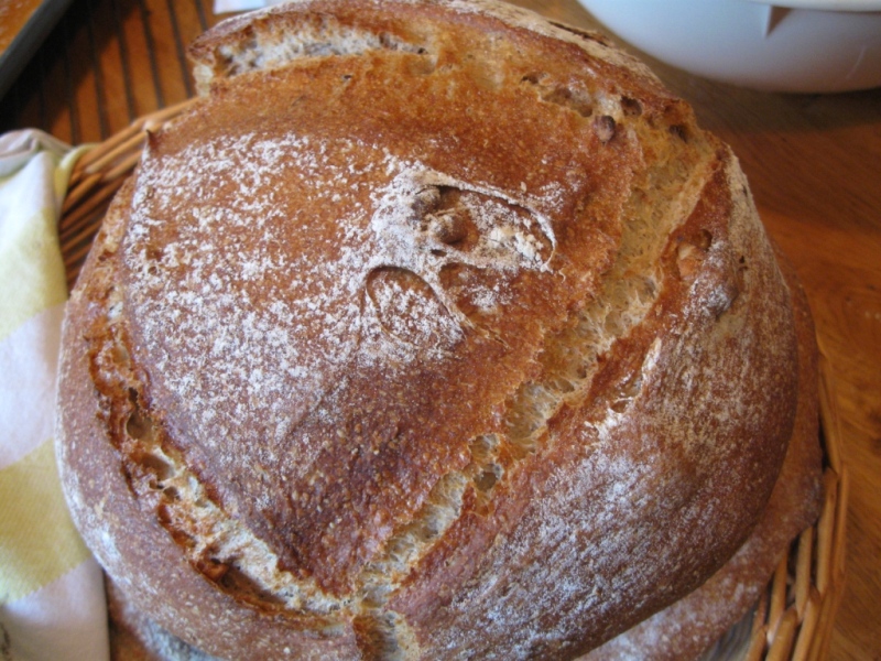The rest of the breads are universal rustics, with walnuts. Only the starter stayed one night in fridge, then baked it at the end of the next day. In the first bread, I tried the get an A. The W is not just my name (Willem), I tried to get the Wordpress logo into a breadform (semi succesfull). Taste was great, six breads were gone in 2 hours after baking (party at our house..some 15 'kids'/young adults). For that I thought it wise not to experiment with new things.