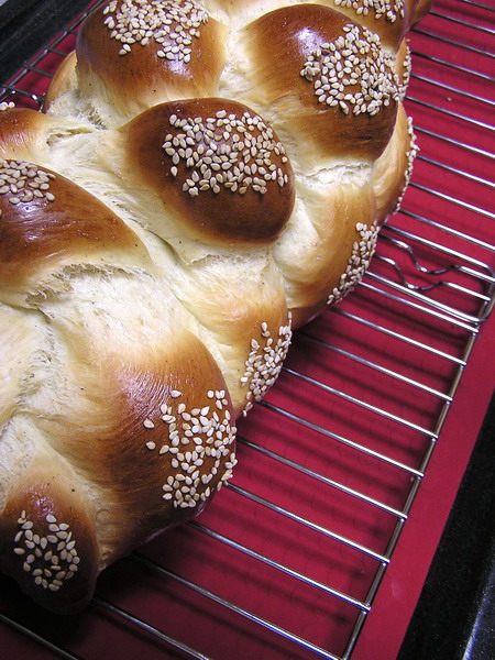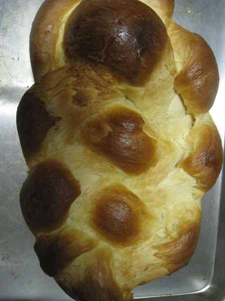 If you want a more even color to your challah, coat it with the egg wash twice.  I coat mine right after braiding, and again after the final proofing, right before I put it in the oven.