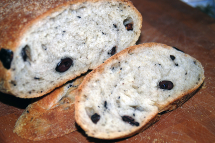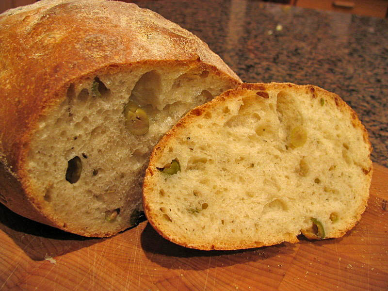 So, I'll look around in the upscale grocers in Milwaukee next time I'm in town. The olives are prominent in the flavor so it would be worth finding a crisp green olive instead of the mushy black ones I used. It would be a different bread. Lepard picked what he did for a reason and I would bet they would be good.