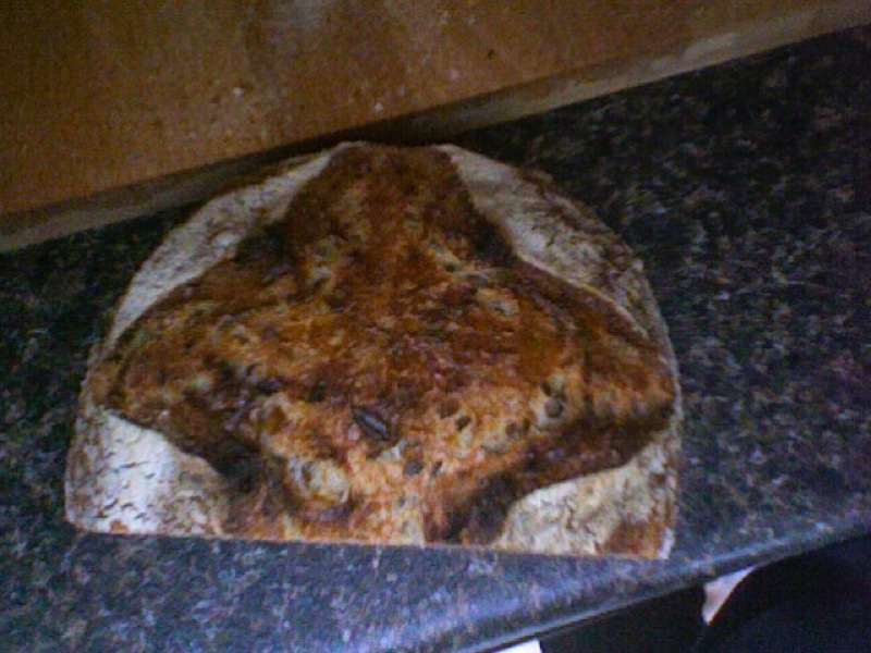 I just wanted to recommend the recipe given on this site: Seeded Sourdough Recipe, and post a couple of pictures of my try at the bread. I found the recipe to be well done, and the ferment/proof times pretty close to what I used. I was surprised the loaf came out as well as it did, as I thought the seeds may break the worked up gluten (I did do a couple more stretch and folds than called for, maybe that helped, perhaps not), and the oven spring was fairly good for how little a boule I made (may be due to a better scoring pattern, or a higher hydration than I am used to, or luck). Anyways, thanks to the original post-er, as I have found a reliable seeded sourdough recipe that I will definitely make again.