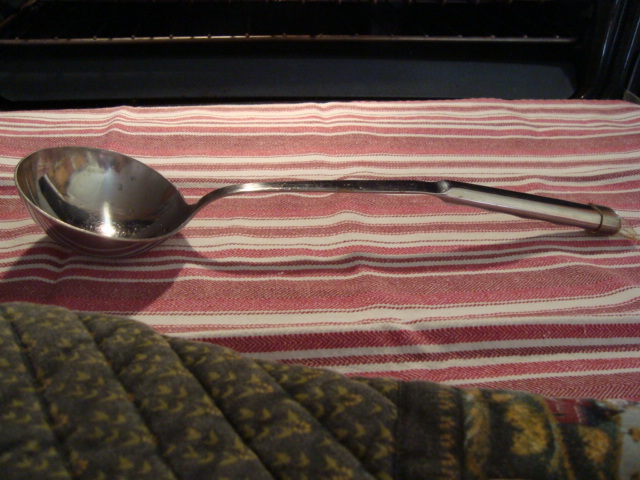 I needed to be able to reach back into my oven to pour water into my lava stone filled iron pans.  A 7" small for pre steaming and the extra large 12" iron pan filled with lava rock because with this size I can add more water for extra steam if needed.  I leave them in oven the whole time.  I steam from above because my 2 stones are made to cover the complete shelf and I leave both stones because I like room it gives for baking.  I took my ladle that holds just under a '1/2' cup of hot water and bent it so the handle became even with the cup.  Now I can easily reach far back and with an oven mit and without my hand or arm going into the oven itself and I don't have to worry about breaking blubs, oven glass 'it's still covered with a towel. I tried several pouring devices..this works great for me and was simple to make..I just bent the handle.  Now I have a very long reach with just a simple twist of my wrist to pour in the water.  I grab the towel off the oven glass door with my left hand and quickly shut the oven door with my right with ladle still in hand.
