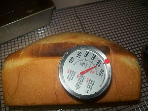 You may need to place a sheet of aluminum foil over the top of the loaf to keep the crown from burning.