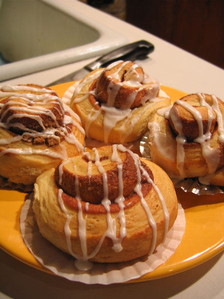 Here is a great recipe for not to sweet but delicious cinnamon buns.  If anyone else has any good recipes please let me know.  I am looking for something ideally a little flakier than this and more along the lines of a danish spiral, but with a cinnamon filling.  Enjoy the recipe!