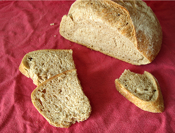 I set out to make what has become my standard 25% wholewheat rustic Italian loaf (blogged here) and discovered, well into weighing and mixing the dough, that I had run out of white flour. I had only 150 gm and the recipe called for 300 gm. But I did have plenty of wholewheat. And it was too late to stop and go get more. So I just made up the missing mass with wholewheat flour. Nothing ventured ...