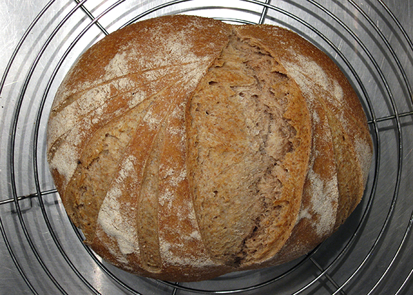 The final formula was thus about 350 gm of biga at 75%, 150 gm white flour, 25 gm whole rye flour and 350 gm wholewheat flour, at a final hydration of 62.5%. So it was effectively about 40% wholewheat.