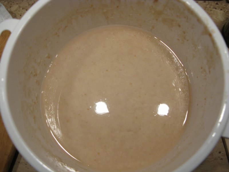 They both call for 4 oz of water and flour, but different amount of cups. I've found #1 first, and started to make a starter, but being from europe, i hand't realized that ounces there are probably fluid ounces and not weight. So i've added 114 grams of water and 114 grams of flour (50/50 mix of bread and whole wheat) every time. By the day 3, it was pretty obvious that something is wrong - the starter was not any near like the picture, although it did had the smell and the bubbles. Also, it started to become separated a little, with thin layer of murky liquid on top and dough-like mass on the bottom. I've googled a bit more and found #2. And then i realized that i used a wrong measure, and put too much flour, basically twice as much.