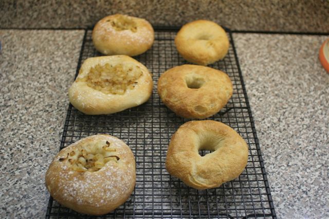 Hello, I wanted to bake something easy today. I found Rose levy's Baily formula on line and made a single test batch. After shaping the six pieces of dough into tight balls I let them rest for one hour. When it came time to shape the baily I decided to make three bagels. I quickly heated a sm. pot of water & baking soda and started to shape my bagels. I used the punch a hole in the middle with your finger method, then just twirled it on my index finger. It worked great but next time they go right off my finger into the boiling water. I messed up the shape picking them back up after shaping. The Flat Baily is close to what a New York Baily looks like the onions did not stick next time i will push them into the dough instead of just lay them on. That's what a test run is for.