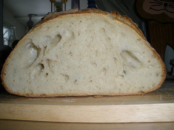 Oh, and Hamelman's recipe puts the dough in a stand mixer for a few minutes after an autolyse, both steps that I did not use here, this was no-knead bread. I just took a picture of the crumb, and figured I would add this also.