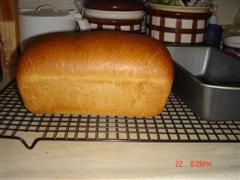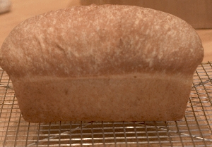 This is my loaf of the BBA light wheat, made with 38 oz of dough in a 9 x 5 pan. Again, in my opinion, Reinhart developed this recipe to be an impressive riser. All things being equal, your recipe is not going to have quite the rise: