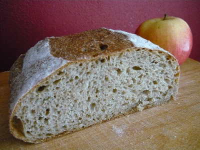 The bread looks pretty, smells fine, has an open crumb and is very soft. I replaces 200g with whole wheat flour