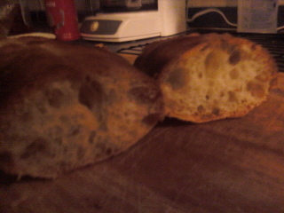 The bread came out a bit darker than I like and i'm not too crazy about the taste of it.  Also it's missing some salt... actually, i've got some more dough in the fridge, let me go add salt to that now...