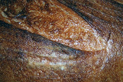 As you see, I proofed the first two using a couche and the second pair were proofed in a plastic banetton. And one of the loaves in a banetton was sprayed with water to see if I could encourage cracks. It's hard to see in these images but the crumb is translucent and very nice mouth feel.
