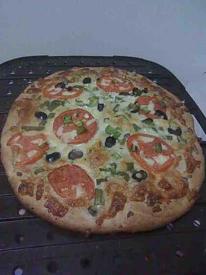This is one of the best pizza dough I ever made, although I burned out some of the cheese.
