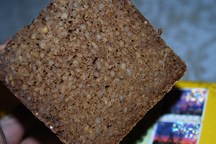 Tracy: I held back until I had the chops, meal and dark rye. You can see all the rye berries that absorbed the water in the crumb. They expand so much that the berries end up being a significant component to the mix. I'm sure they become the reason it stays moist and tender. I think your husband would appreciate this as an appetizer with his favorite topping. Less sandwich bread and more a tasty base for extraordinary appetizer.