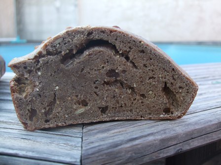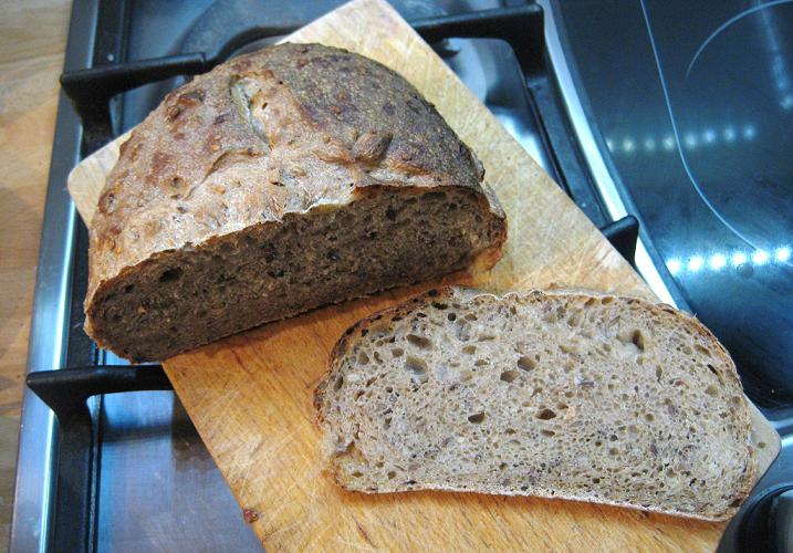 the above bread is 100% whole wheat (with some seeds added), but contains yeast. Here would be my attempts at 100% whole wheat sourdough: