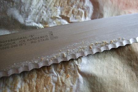 No, the knife streaks are not the result of slicing into freshly baked bread- I always let my loaves cool off before I slice into them.