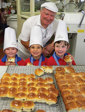 Well i made it to work before the boss, just posting a picture of a batch of buns i made with some primary school kids that were visiting the college last year