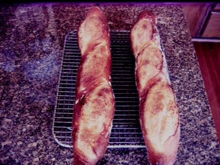 The flavor of these is truly wonderful.  The small addition of whole wheat flour and sourdough gives them a nuttiness that I've only found in poolish baguettes.