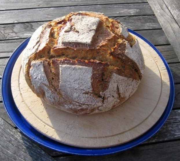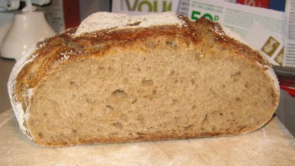 After seeing quite alot of  blog entries from my fellow bakers regarding French Flour I thought i'd share a pic of  this loaf made earlier today.  I spent last weekend in France so picked up some Pain de Campagne flour (Francine) from the massive Carrefour Hypermarket outside Caen. I have used it and Francines white flours before with good results though they are more expensive than the flour I buy in the UK.  Total flour weight was 550grams + rye starter and around 350ml of water. Yesterday, I made up a sponge with 250g of the flour & all of the water  then added the rest of the flour plus some olive oil and a little salt once it was good and bubbly.  After a leisurely kneading it was retarded overnight in the fridge, warmed up, shaped and proofed for couple of hours before baking in a cast iron casserole (from a cold oven) for 45mins on max (250c) then lid off for an extra 5mins at 200c. It was even nice enough for a pic outside!, crumb pic to follow cheers, Steve