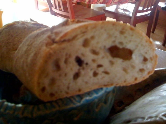 Thanks, Don -- how could I forget the cardinal rule in bread photo posting (worthless without a crumb shot)? Not the best focus, but it'll give an idea: