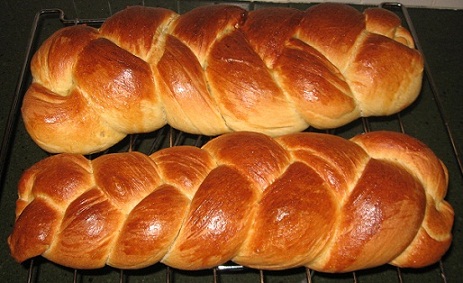 Forming the loaf – We want to make a braided bread here. So, divide the dough to 3 equal parts, form long strands out of each part. The edges should be thinner the center. Connect the 3 strands in the edge and start braiding them together.